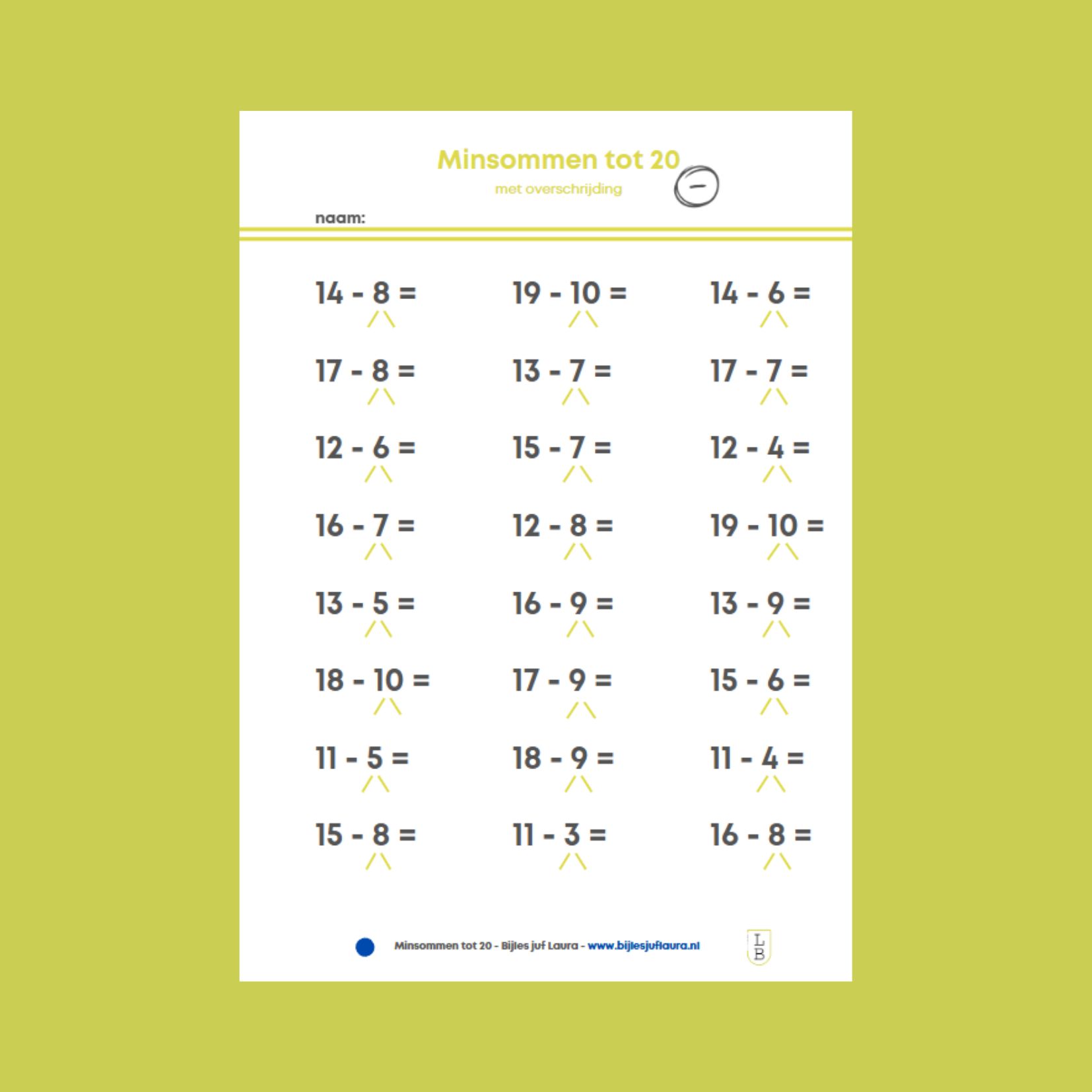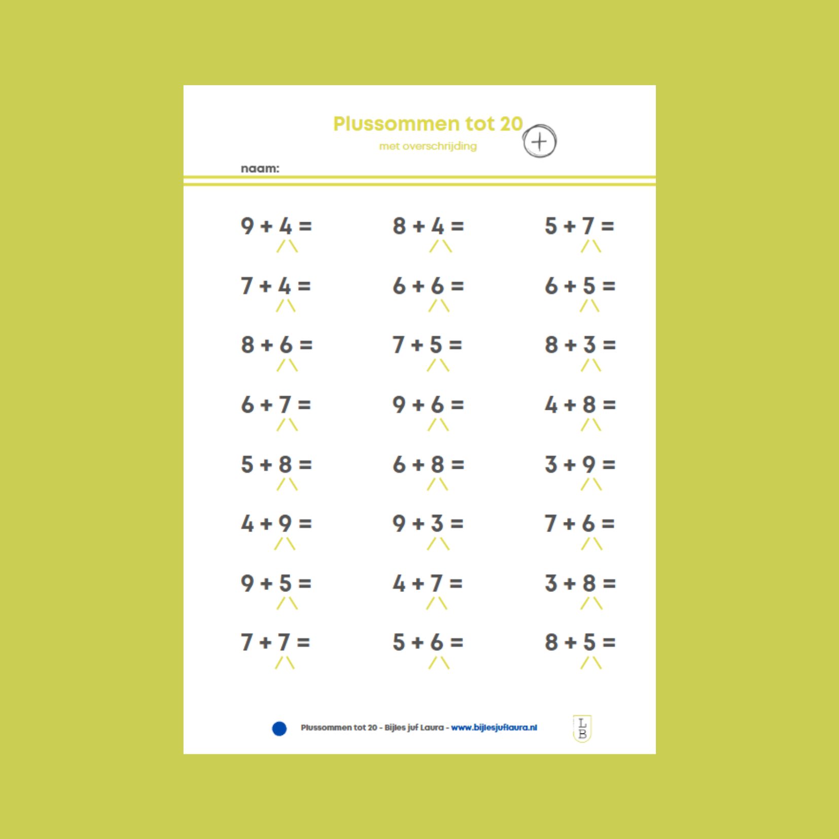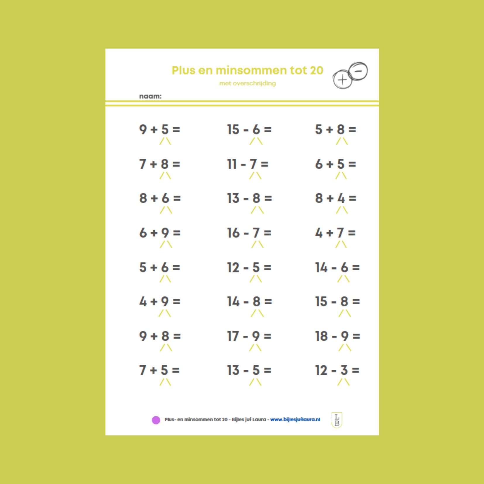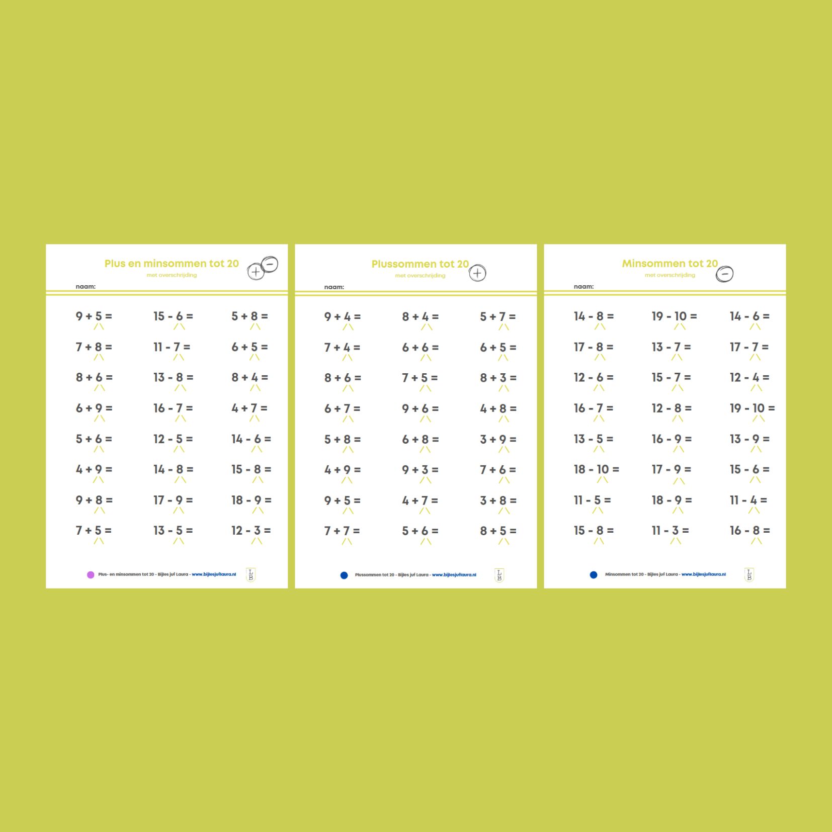 Met deze werkbladen: plus- en minsommen tot 20 – met overschrijding, oefenen leerlingen plus- en minsommen tot 20 waarbij ze over het tiental heen moeten rekenen. Onder het tweede getal van elke som staan haakjes, zodat kinderen de splitsing kunnen maken en stap voor stap leren optellen of aftrekken.